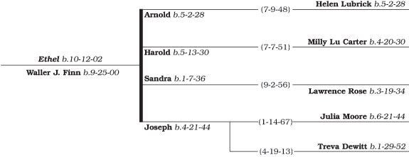 | After Seidell came Ethel. She married Wally Finn in 1925, and they gave us the Kalamazoo kousins. Ethel was only 43 when she passed away. Place your mouse over a wedding date. If the mouse pointer indicates a hyperlink, click to see the wedding photograph. If you see an error, let us know. Thanks. Email: webmaster |